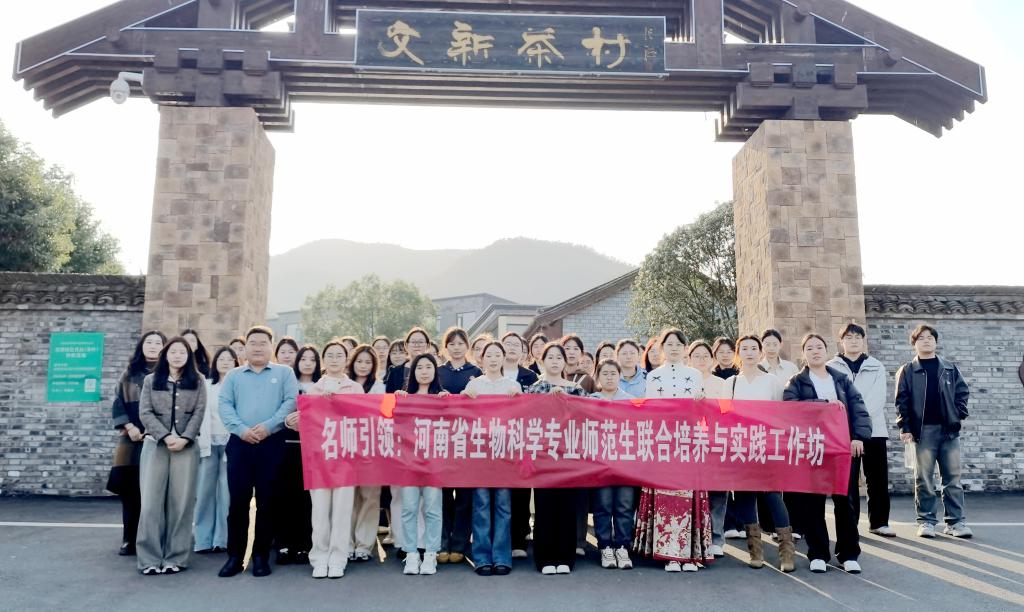11月16日,伟德bv1946官网河南省生物科学专业师范生联合培养与实践工作坊组织生物科学专业59名师生,到信阳市浉河区文新茶村,开展了一场融合茶文化体验、乡村振兴调研与茶树种质资源科学考察的实践活动。本次活动由张伟老师带队,通过“名师力行”社会实践,将《植物学》《遗传学》《生态学》等专业课程知识与田野实践深度融合,提升学生的综合素养与科学探究能力。