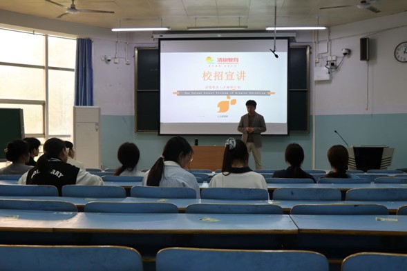 为搭建校企合作桥梁,拓宽毕业生就业渠道,助力学子对接优质岗位,2026年4月10日下午,洛阳清艳校外托管服务有限公司专场招聘在我校教九楼305教室顺利开展。本次活动由清艳教育集团洛阳直营校运营总监寇梦泽主讲,伟德bv1946官网党委副书记荣宪举到会,伟德bv1946官网2021级优秀毕业生王丁奕受邀到场,相关专业毕业生参与。