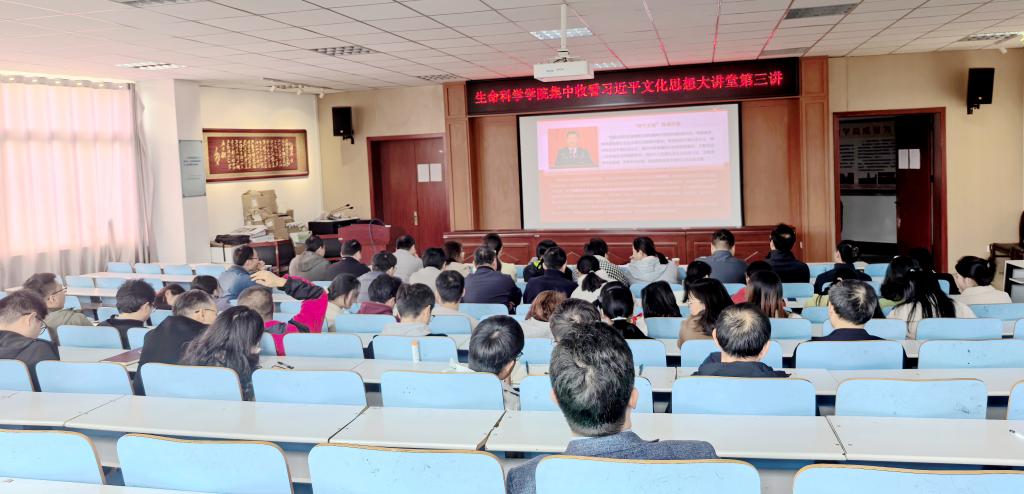 为深入学习贯彻习近平新时代中国特色社会主义思想,11月11日下午,伟德bv1946官网在生科楼414举办了习近平文化思想大讲堂集中学习活动。学院全体教职工共同观看并学习了中国社会科学院哲学研究所杨洪源教授主讲的《“两个文明”协调发展的时代要求和理论突破》视频课程。
